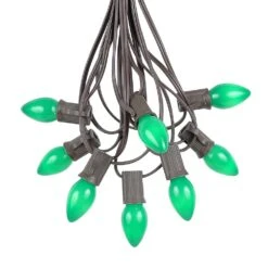 100 C7 String Light Set With Green Ceramic Bulbs On Brown Wire
