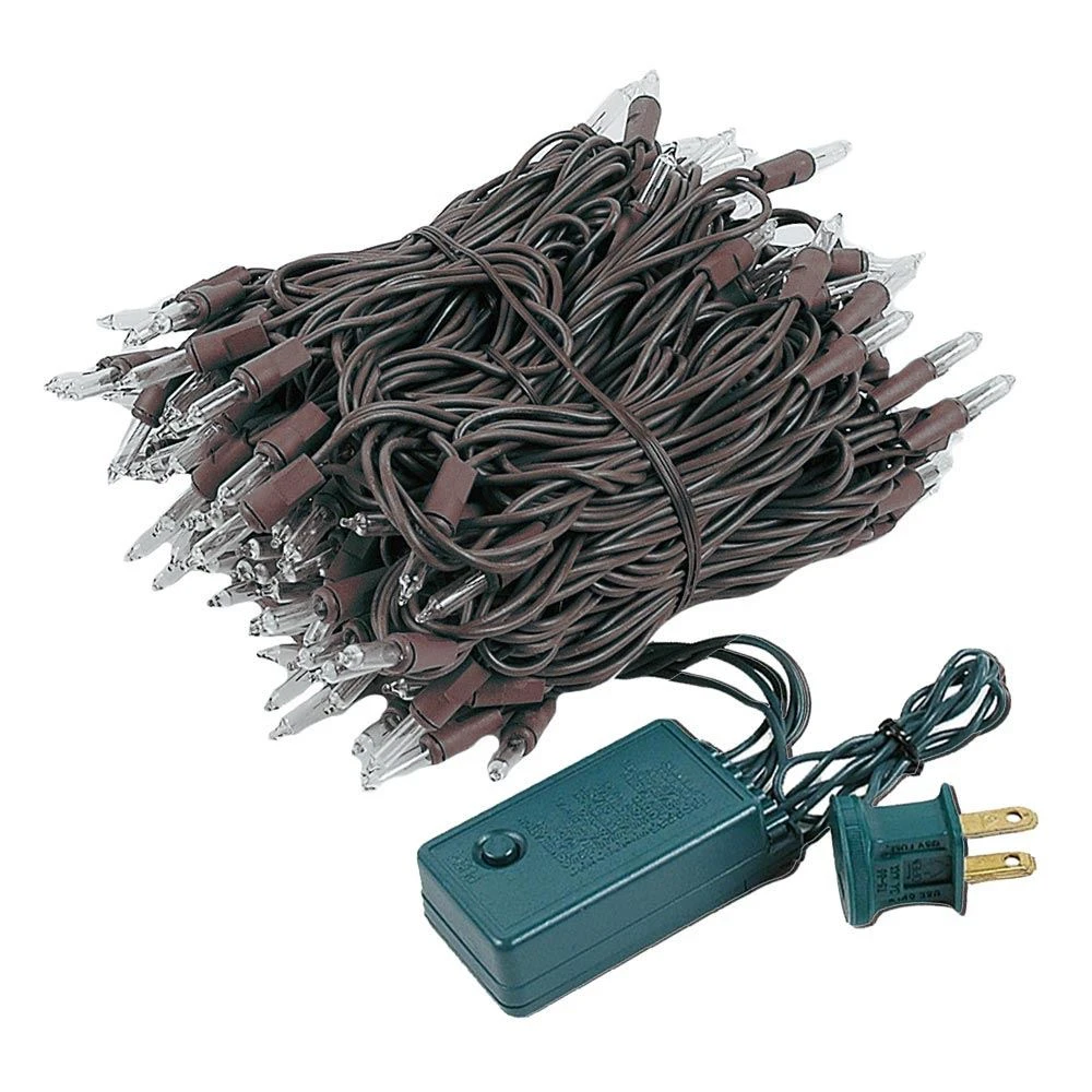 140 light clear chasing set with 4″ spacing 46.5′ long with 16 function controller on brown wire. Create dazzling and animated christmas light displays using our clear chasing/fading multi function clear light set. This set uses our premium grade mini light bulb with a 3000 hour bulb life, if one bulb burns out the rest will stay lit. UL listed for indoor and outdoor use.