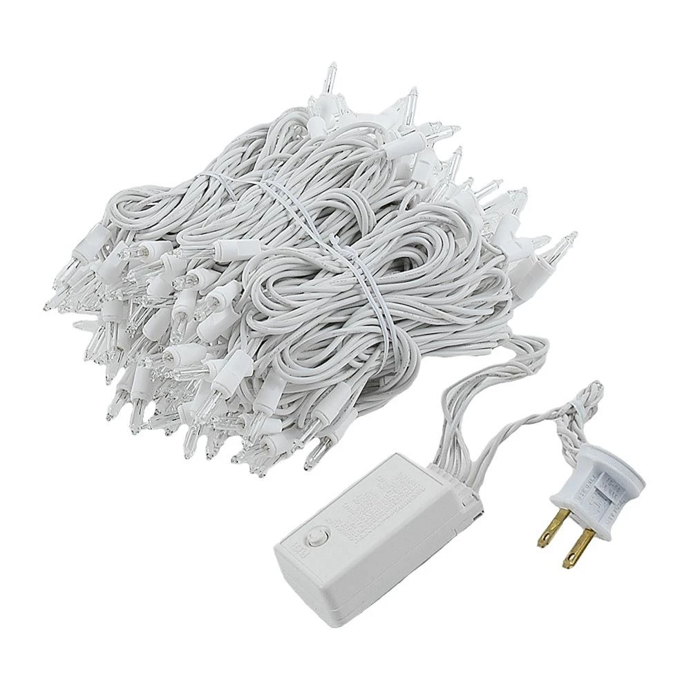 140 light clear chasing set with 4″ spacing 46.5′ long with 16 function controller on white wire. create dazzling and animated christmas light displays using our clear chasing /fading multi function clear light set. This set uses our premium grade mini light bulb with a 3000 hour bulb life, if one bulb burns out the rest will stay lit. Tested by Novelty Lights to assure the highest quality. UL listed for indoor and outdoor uses.