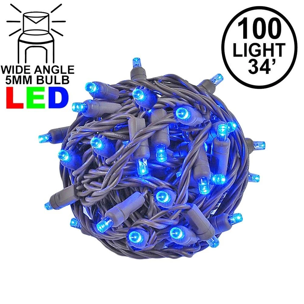 100 Blue Wide Angle LED Mini Lights on Brown WIre