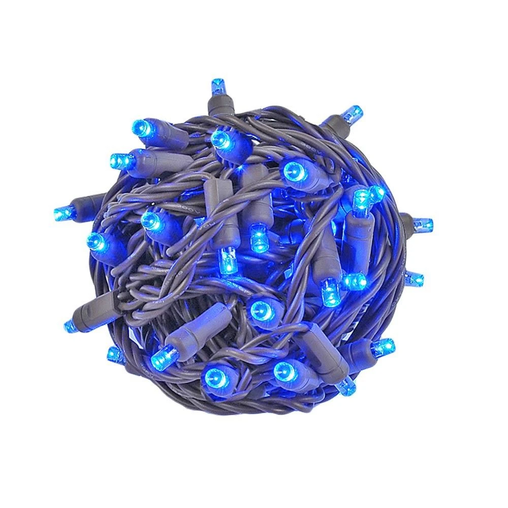 Our brown wire super bright 100 light Blue wide angle mini Lights have 100 commercial grade LED’s on 4″ centers making each string 34′ long. These strings have non-removable LED’s this eliminates failures from loose, broken, or removed bulbs. These brown chord commercial grade blue LED Christmas lights very durable, long lasting, and extremely energy efficient. Each string is full wave rectified, which eliminates any flickering making these LED Christmas lights brighter than ordinary LED mini Lights. Each LED uses a patented concave design making these LED viewable from all angles. Energy Star qualified and UL Listed for indoor and outdoor use. Connect up to 21 strings end-to-end.