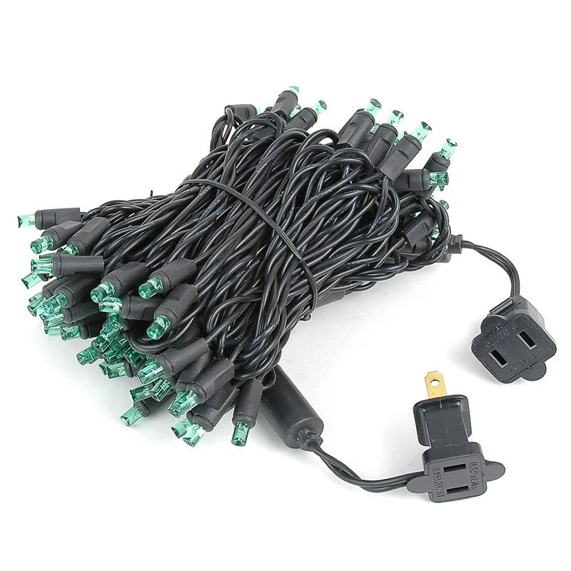 Our super bright 100 light Green Wide Angle Mini Lights have 100 commercial grade LED’s on 4″ centers making each string 34′ long. These strings have non-removable LED’s; this eliminates failures from loose, broken, or removed bulbs. These commercial grade green LED Christmas lights very durable, long lasting, and extremely energy efficient. Each string also is full wave rectified, which eliminates any flickering while making these LED Christmas lights brighter than ordinary LED mini Lights. Each LED uses a patented concave design making these LED viewable from all angles. Energy Star qualified and UL Listed for indoor and outdoor use. Connect up to 21 strings end-to-end.