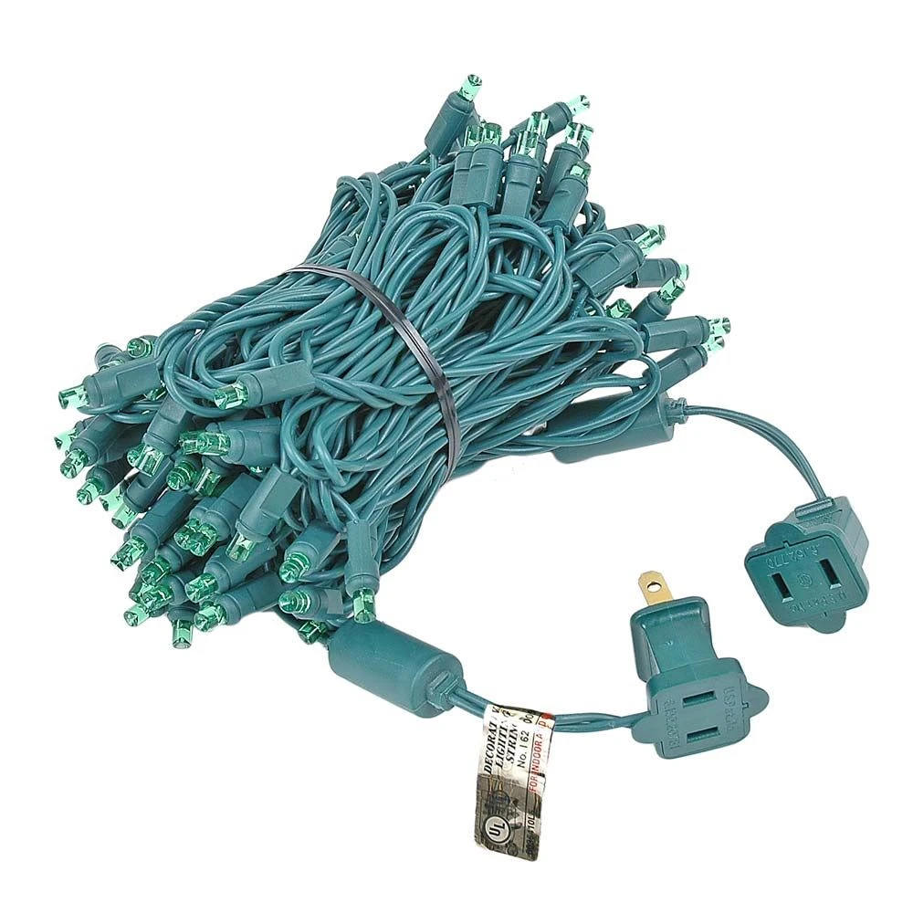 Our super bright 100 light Green Wide Angle Mini Lights have 100 commercial grade LED’s on 4″ centers making each string 34′ long. These strings have non-removable LED’s; this eliminates failures from loose, broken, or removed bulbs. These commercial grade green LED Christmas lights are very durable, long lasting, and extremely energy efficient. Each string is full wave rectified, which eliminates any flickering while making these LED Christmas lights brighter than ordinary LED mini Lights. Each LED uses a patented concave design making these LED viewable from all angles. Energy Star qualified and UL Listed for indoor and outdoor use. Connect up to 21 strings end-to-end.
