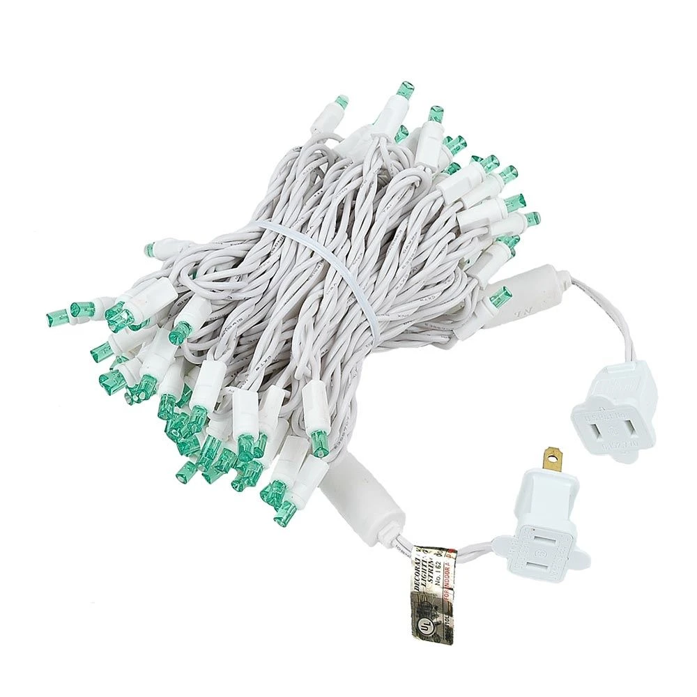 Our super bright 100 light Green Wide Angle Mini Lights have 100 commercial grade LED’s on 4″ centers making each string 34′ long. These strings have non-removable LED’s; this eliminates failures from loose, broken, or removed bulbs. These commercial grade green LED Christmas lights are very durable, long lasting, and extremely energy efficient. Each string is full wave rectified, which eliminates any flickering while making these LED Christmas lights brighter than ordinary LED mini Lights. Each LED uses a patented concave design making these LED viewable from all angles. Energy Star qualified and UL Listed for indoor and outdoor use. Connect up to 21 strings end-to-end.