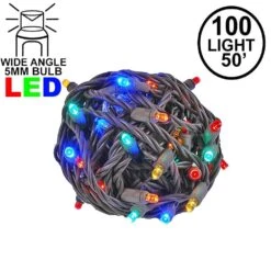 Our super bright brown wire 100 light Multi colored wide angle mini Lights have 100 commercial grade LED’s on 6″ centers making each string 50′ long. These strings have non-removable LED’s; this eliminates failures from loose, broken, or removed bulbs. These commercial grade multi colored LED Christmas lights are very durable, long lasting, and extremely energy efficient. Each string also is full wave rectified, which eliminates any flickering while making these LED Christmas lights brighter than ordinary LED mini Lights. Each LED uses a patented concave design making these LED viewable from all angles. Energy Star qualified and UL Listed for indoor and outdoor use. Connect up to 21 strings end-to-end.