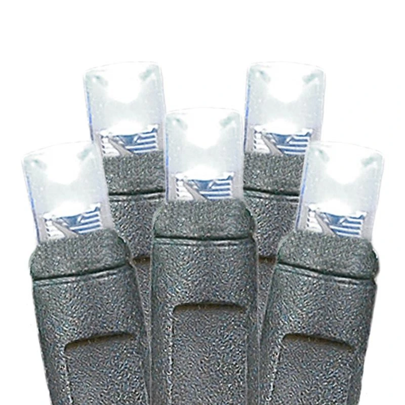 Our super bright 100 light Pure White Black Wire Wide Angle Mini Lights have 100 commercial grade LED’s on 6″ centers making each string 50′ long. These strings have non-removable LED’s; this eliminates failures from loose, broken, or removed bulbs. These commercial grade pure white LED Christmas lights are very durable long lasting and extremely energy efficient. Each string is full wave rectified, which eliminates any flickering making these LED Christmas lights brighter than ordinary LED mini Lights. Each LED uses a patented concave design making these LED viewable from all angles. Energy Star qualified and UL Listed for indoor and outdoor use. Connect up to 21 strings end-to-end.