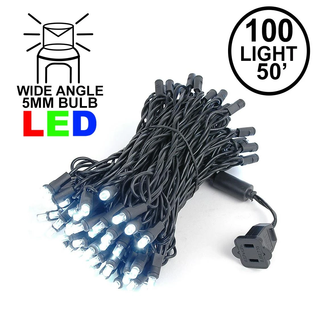 100 Pure White Wide Angle LED Black Wire Mini Lights