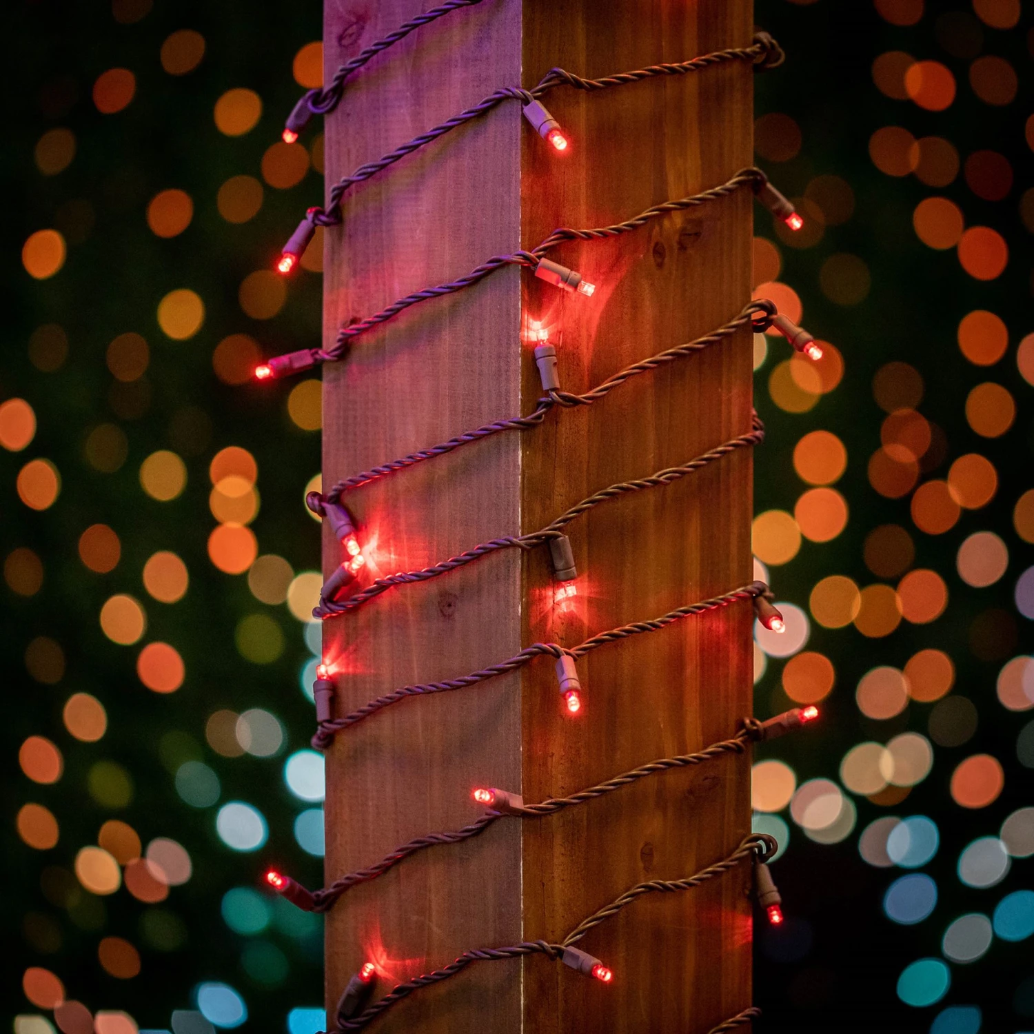 100 Red Wide Angle LED Mini Lights on Brown Wire