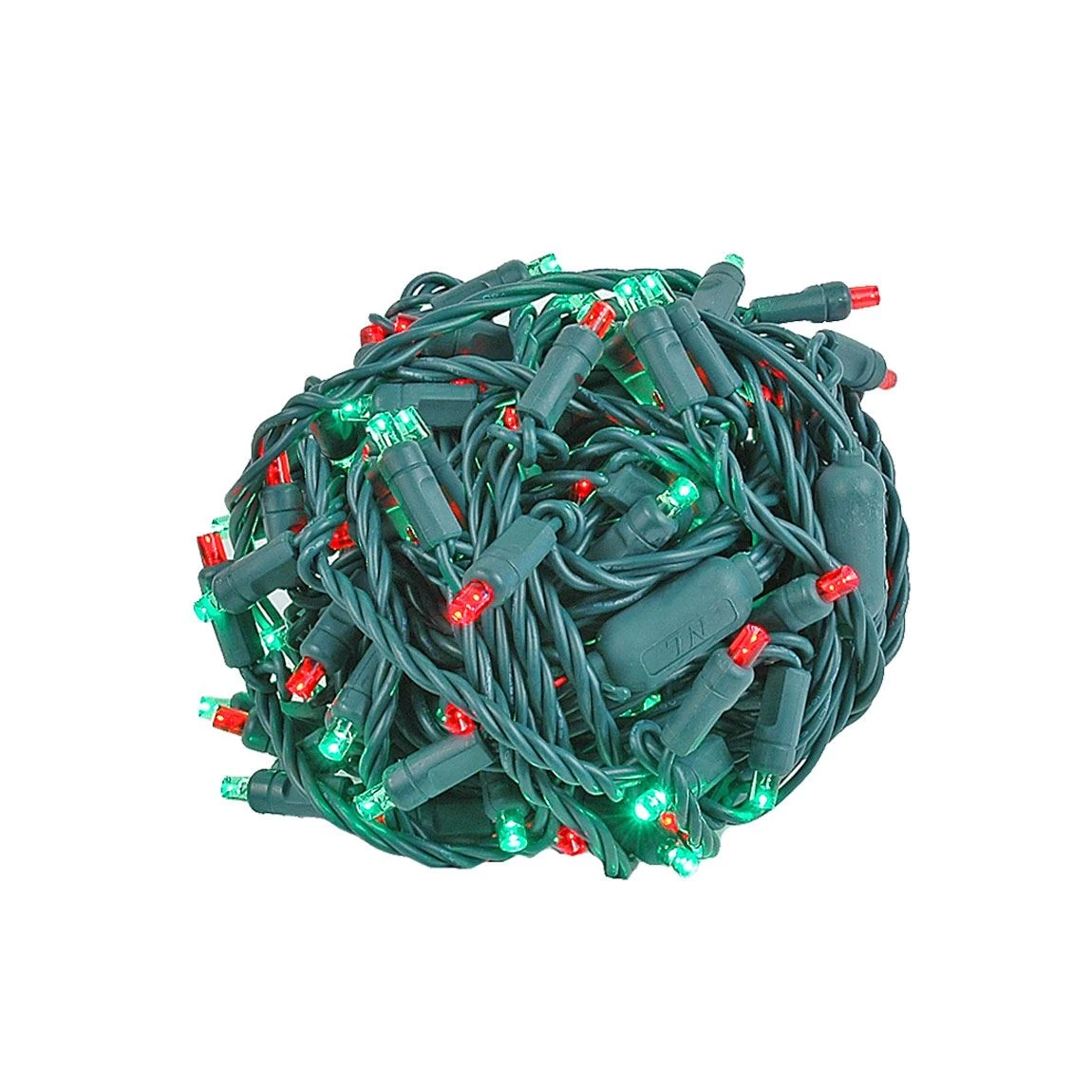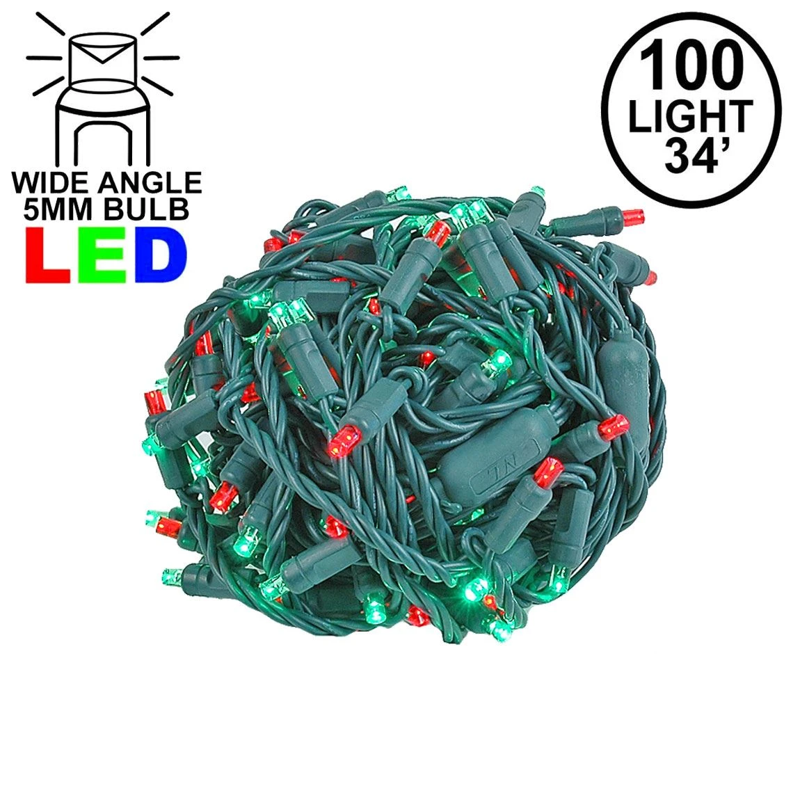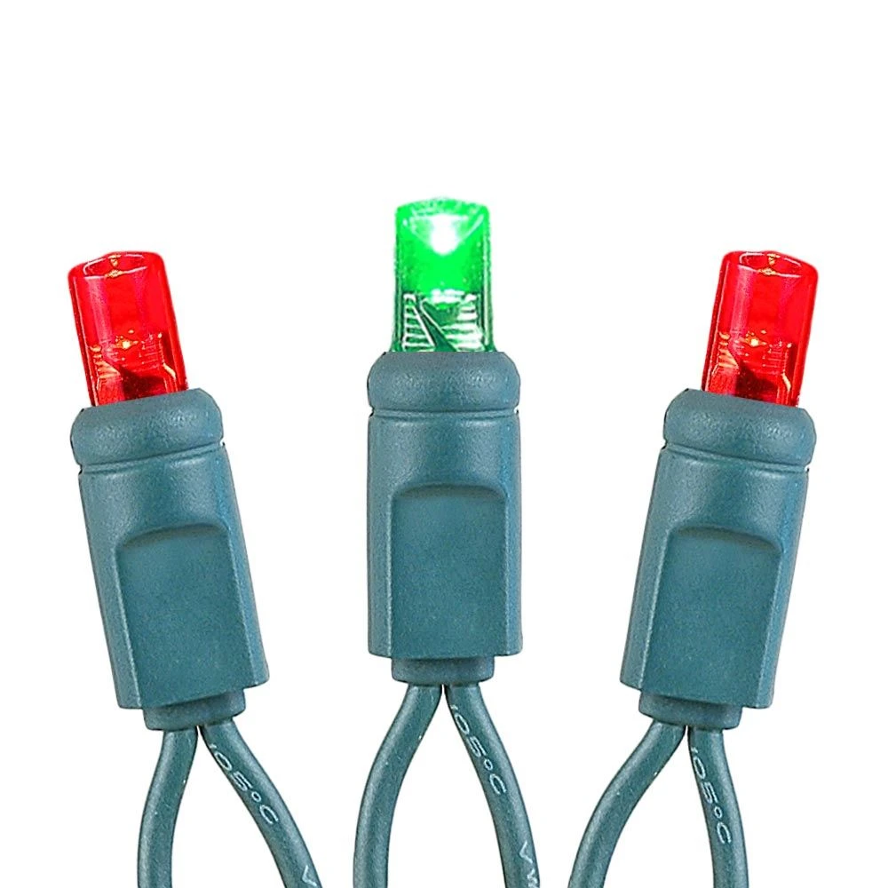 100 Red and Green Wide Angle LED Mini Lights on Green Wire