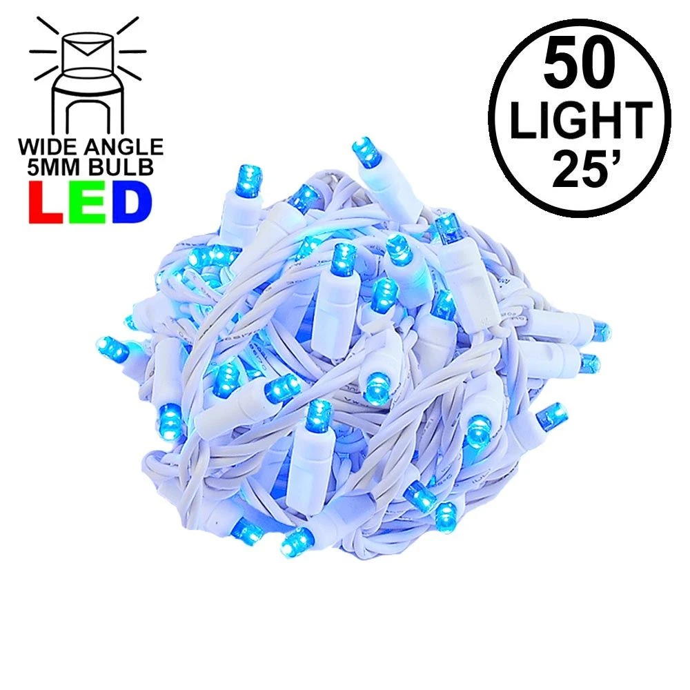 50 Blue Wide Angle LED Mini Lights on White Wire