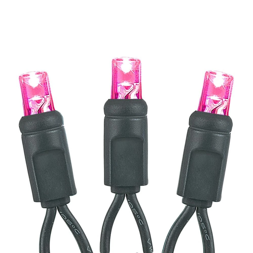 50 Pink Wide Angle LED Mini Lights on Black Wire