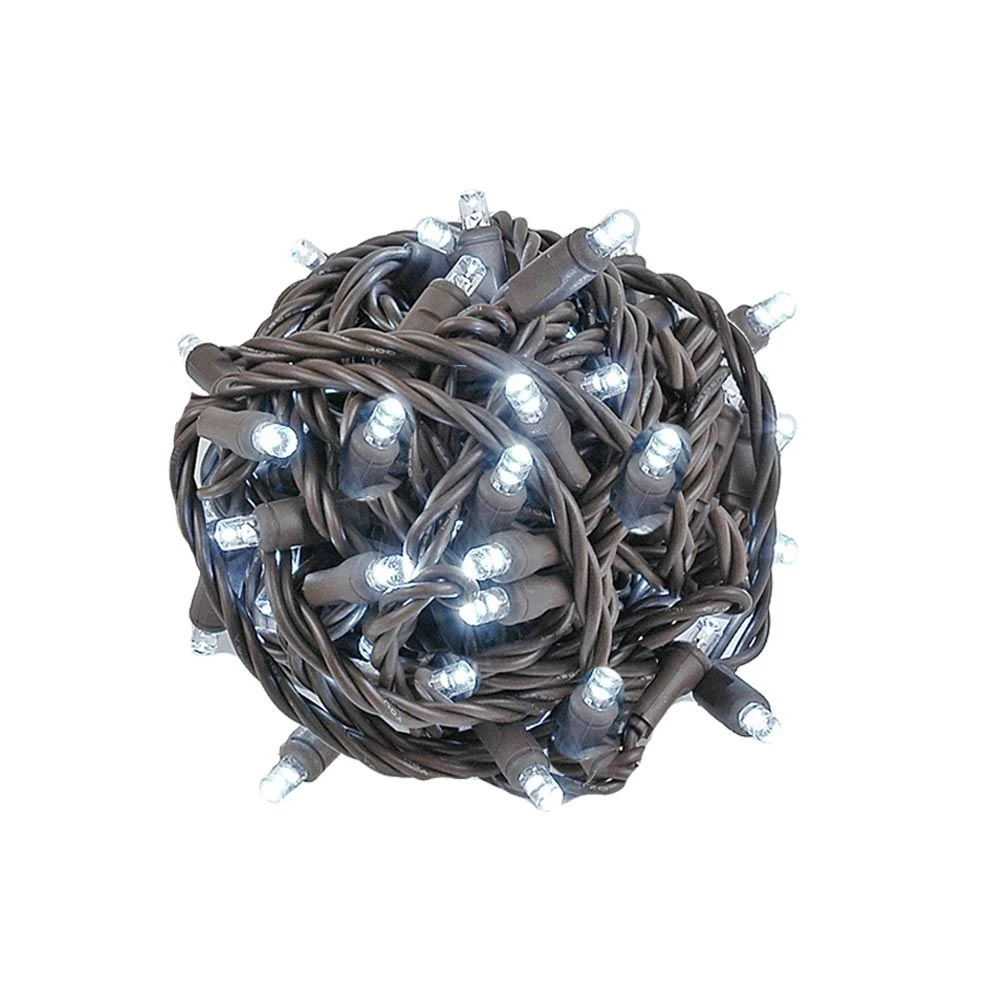 Our brown wire 50 light LED Christmas lights with ultra bright Pure White bulbs on 6″ centers making each string 25′ long. Because these strings have non removable LED’s this eliminate failures from loose, broken or removed bulbs making these commercial grade LED Christmas lights very durable, long lasting and extremely energy efficient. Each string also is full wave rectified which eliminates any flickering while making these LED Christmas lights brighter than ordinary LED mini Lights. Each LED uses a patented concave design making these LED viewable from all angles. . Energy Star qualified and UL Listed for indoor and outdoor use. Connect up to 43 strings end-to-end.