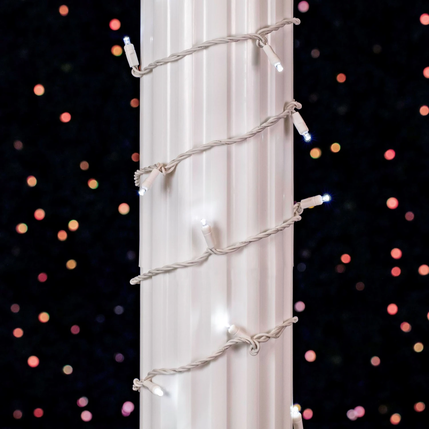 50 Pure White Wide Angle LED Mini Lights on White Wire