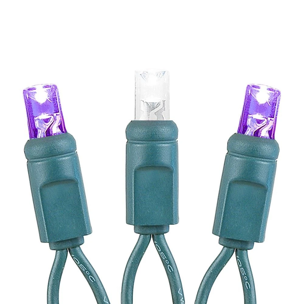 50 Purple and Pure White Wide Angle LED Mini Lights on Green Wire
