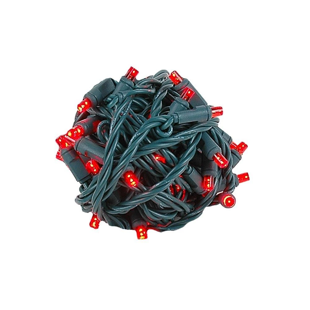 Our super bright 50 light Red Wide Angle Mini Lights on green wire have 50 commercial grade LED’s on 4″ centers making each string 17′ long. These strings have non removable LED’s; this eliminates failures from loose, broken or removed bulbs making these commercial grade LED Christmas lights very durable, long lasting and extremely energy efficient. Each string also is full wave rectified which eliminates any flickering while making these LED Christmas lights brighter than ordinary LED mini Lights. Each LED uses a patented concave design making these LED viewable from all angles. Energy Star qualified and UL Listed for indoor and outdoor use. Connect up to 43 strings end-to-end.