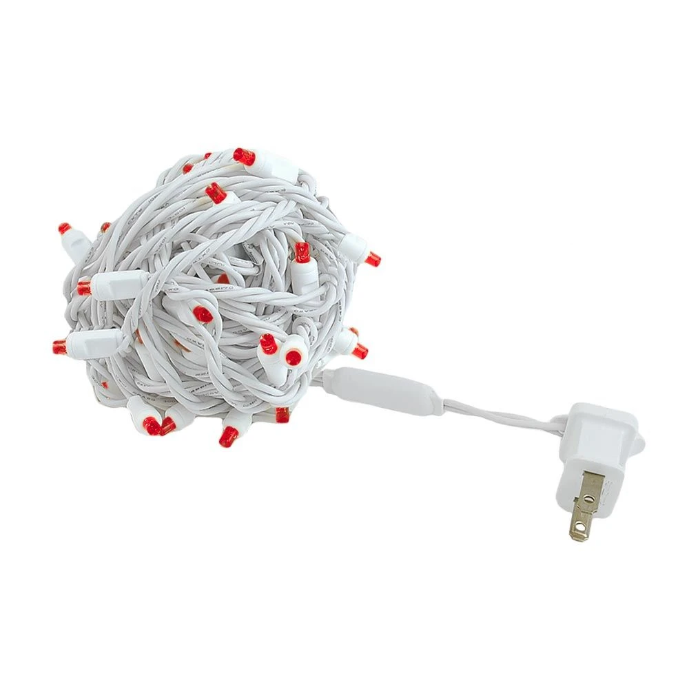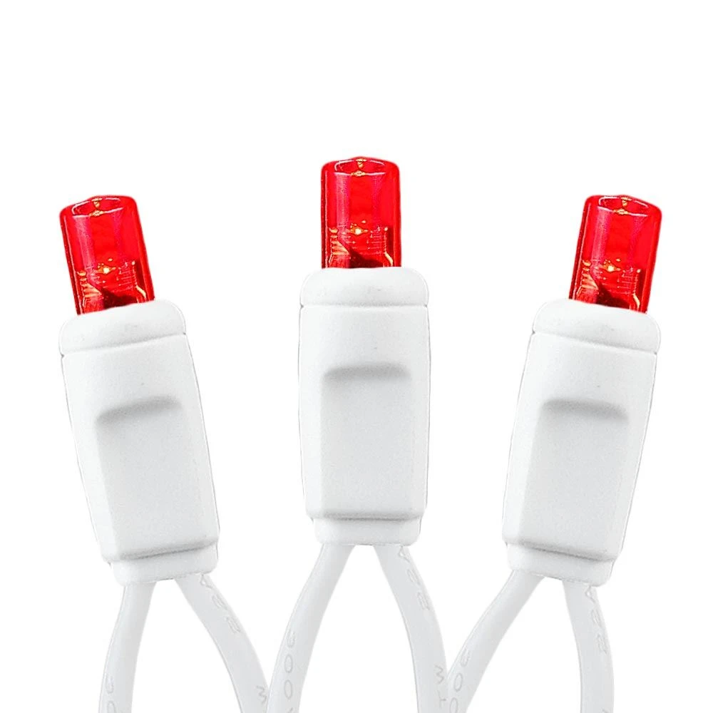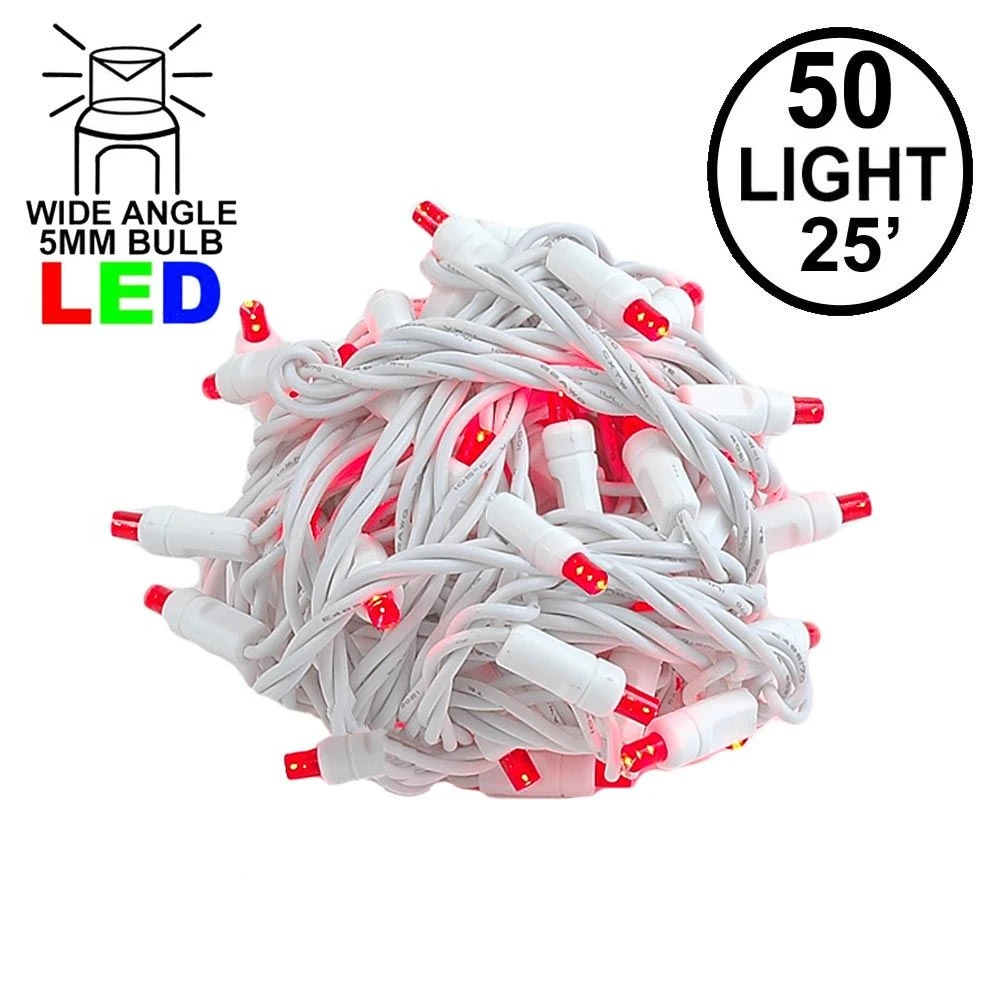 Our super bright 50 light Red Wide Angle Mini Lights on white wire have 50 commercial grade LED’s on 6″ centers making each string 25′ long. These strings have non removable LED’s; this eliminates failures from loose, broken or removed bulbs making these commercial grade LED Christmas lights very durable, long lasting and extremely energy efficient. Each string also is full wave rectified which eliminates any flickering while making these LED Christmas lights brighter than ordinary LED mini Lights. Each LED uses a patented concave design making these LED viewable from all angles. . Energy Star qualified and UL Listed for indoor and outdoor use. Connect up to 43 strings end-to-end.