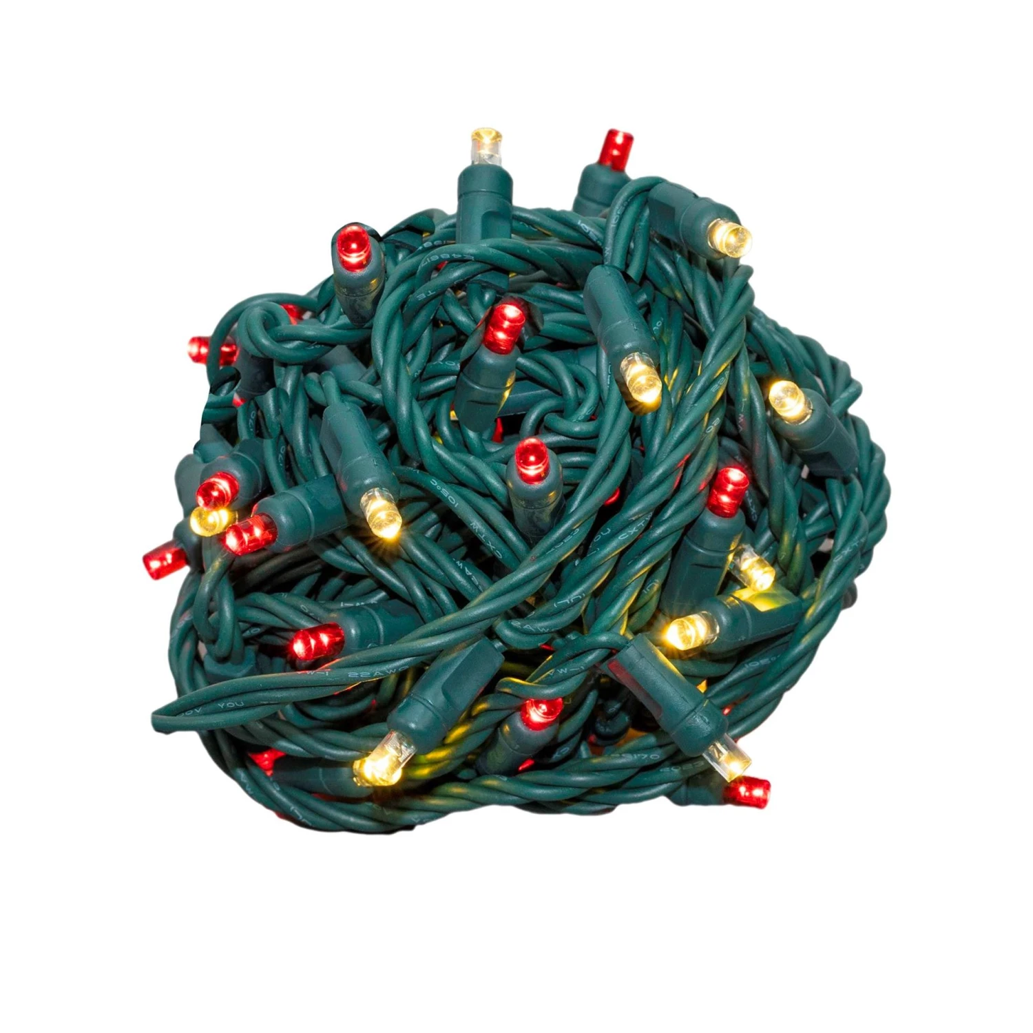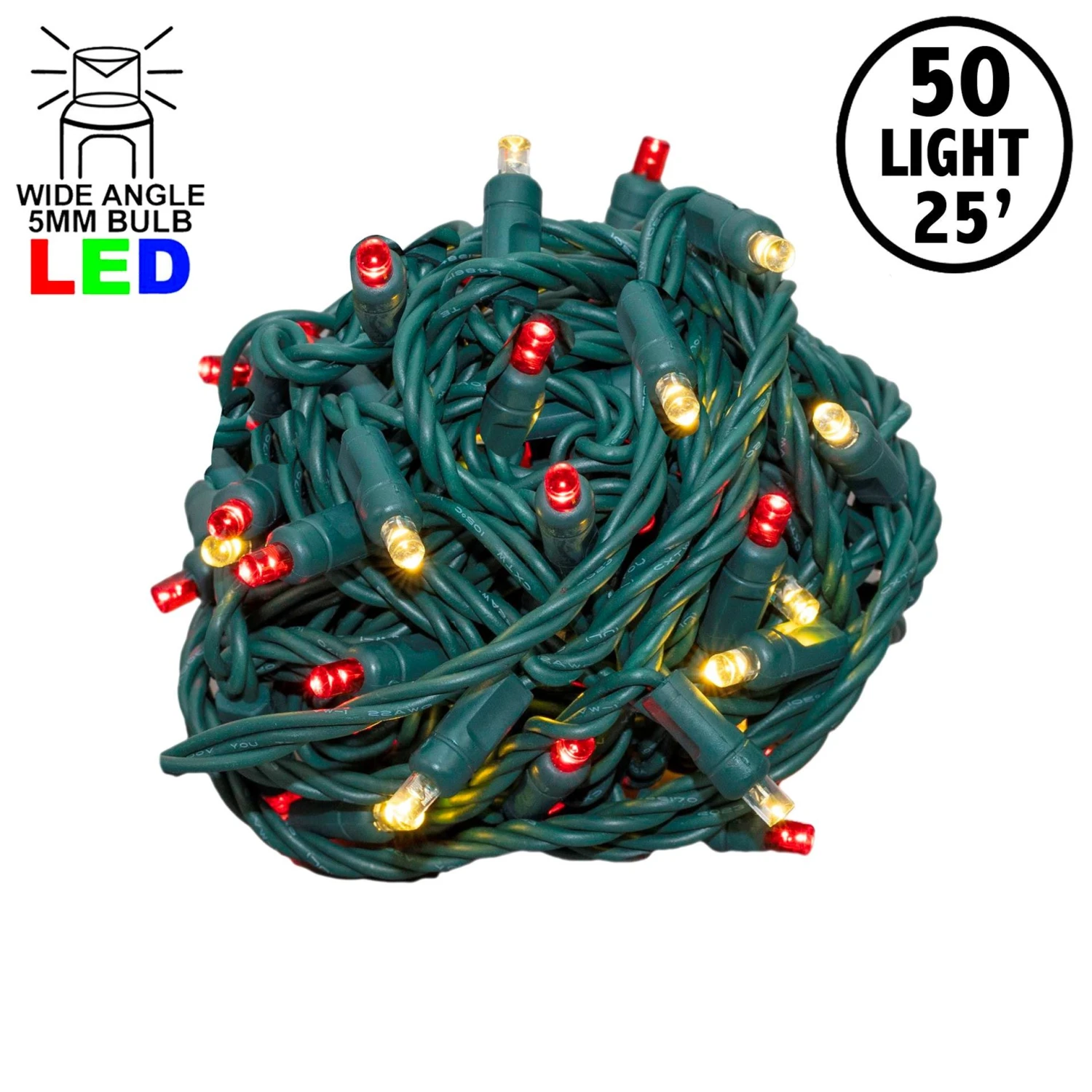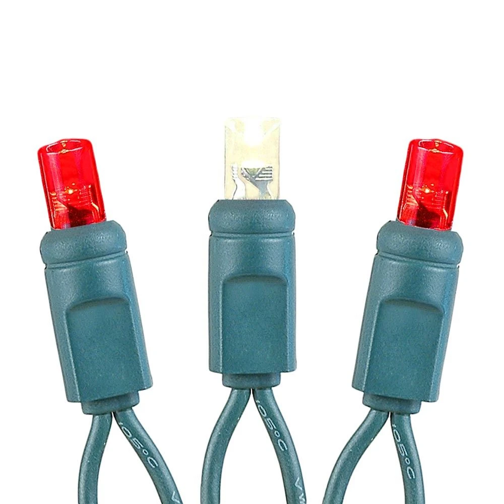 50 Red and Warm White Wide Angle LED Mini Lights on Green Wire