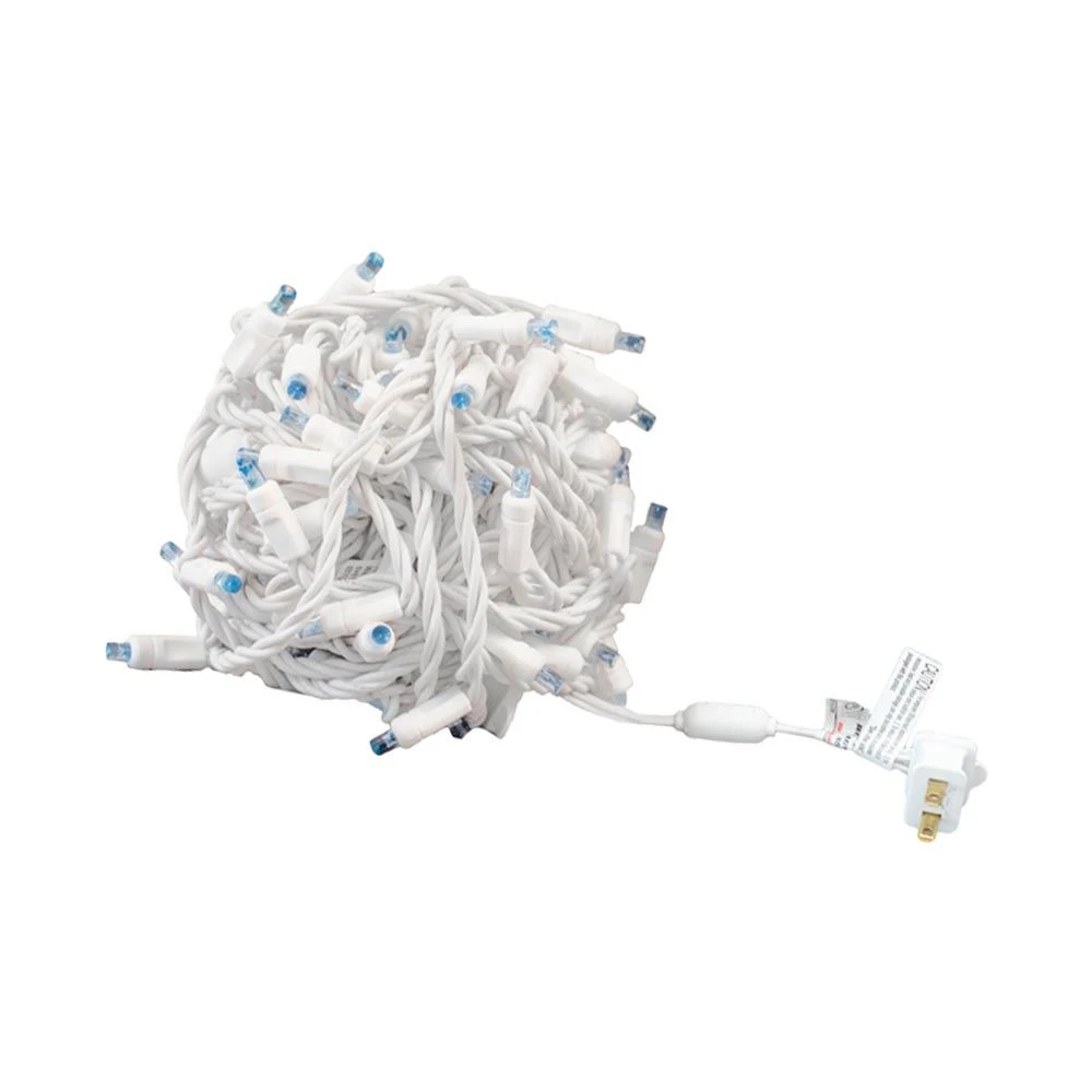 Our super bright 50 light Teal Wide Angle Mini Lights on white wire have 50 commercial grade LED’s on 6″ centers making each string 25′ long. These strings have non removable LED’s; this eliminates failures from loose, broken or removed bulbs making these commercial grade LED Christmas lights very durable, long lasting and extremely energy efficient. Each string also is full wave rectified which eliminates any flickering while making these LED Christmas lights brighter than ordinary LED mini Lights. Each LED uses a patented concave design making these LED viewable from all angles. . Energy Star qualified and UL Listed for indoor and outdoor use. Connect up to 43 strings end-to-end.