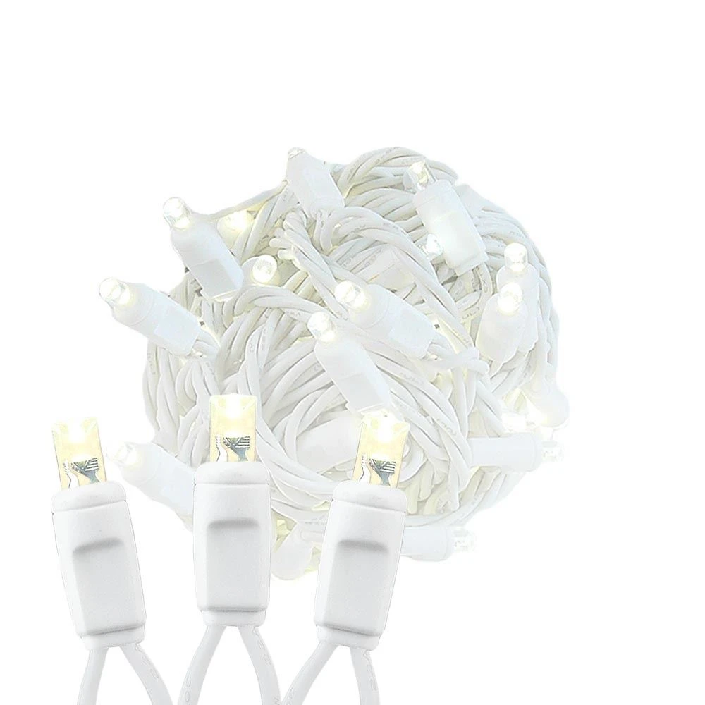 50 Warm White Wide Angle LED Mini Lights on White Wire