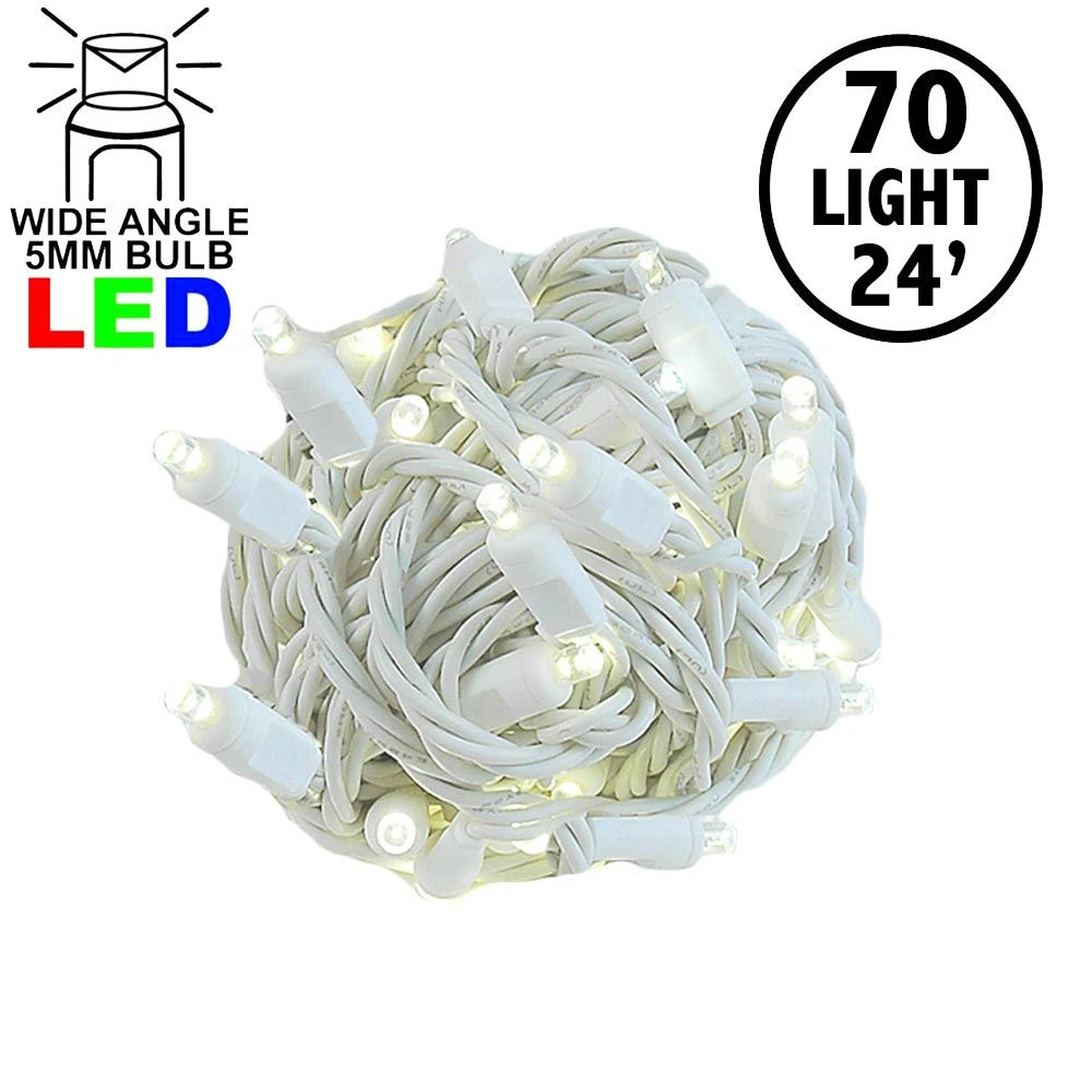 70 Warm White Wide Angle LED Mini Lights on White Wire