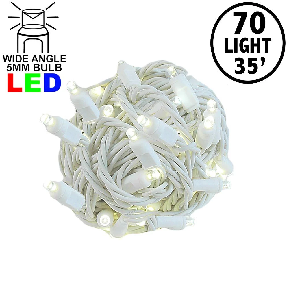 70 Warm White Wide Angle LED Mini Lights on White Wire