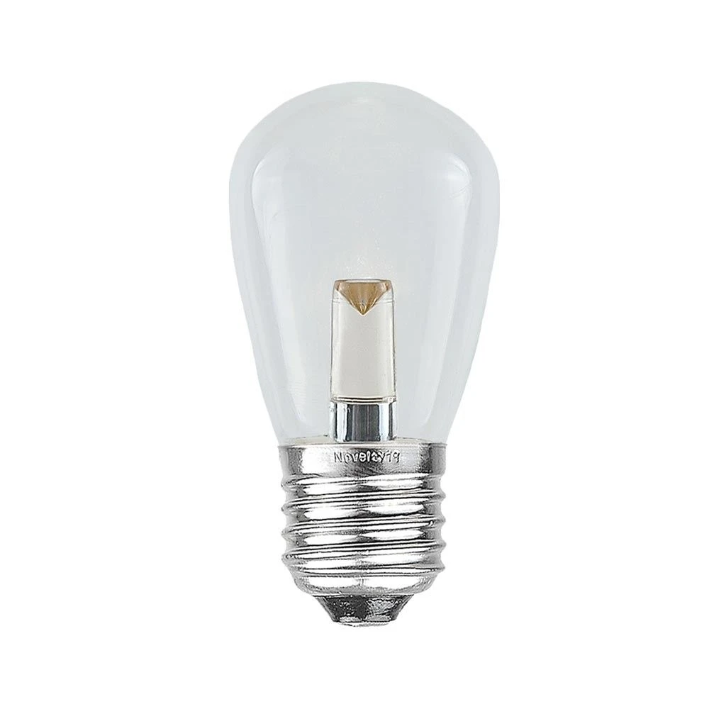 Enhance your outdoor settings with our Designer LED S14 Bulbs. Upgrade your outdoor entertainment areas with our New Designer Series LED bulbs. These LED S14 bulbs offer a perfect warm night time glow using a 1.4 Watt SMD Optic Core with a 25,000 bulb life. Perfect for replacing your outdated 11 watt S14 bulbs. These bulbs are fully dimmable, E26 Nickle Base, and UL Listed. These S14 bulbs are made of glass so they will not fade or discolor. As well as being IP65 approved for wet locations making them perfect for any outdoor application. Our Designer Series S14 bulbs will fit our e26/medium base commercial grade light strings.