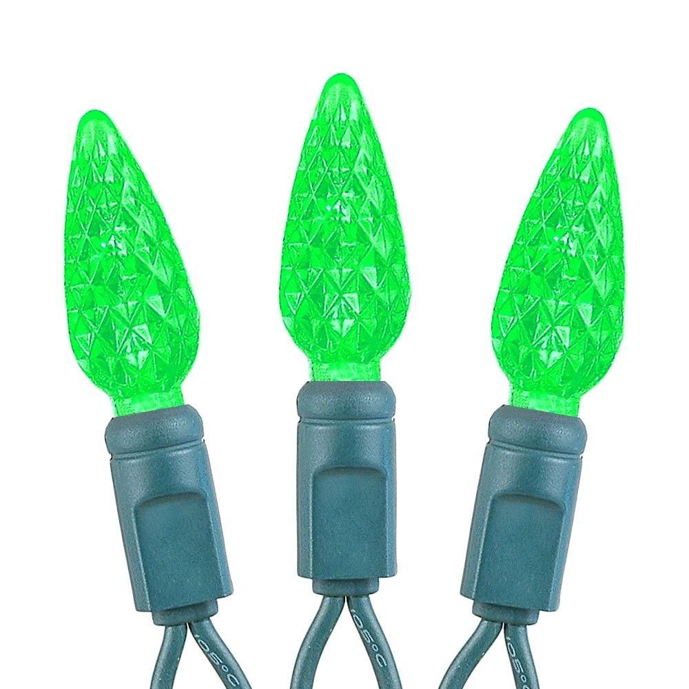 Our 70 light Commercial Grade Green C6 LED Strawberry Lights are sure to brighten up any holiday display or special event. These high quality LED Christmas light sets are built using nonremovable high quality super bright LED’s that will last several years. Because these sets use one-piece non-removable bulbs, failures due to broken, damaged, removed, or burnt-out bulbs, are eliminated. These Green LED mini light strings have 70 LED’s spaced every 4″ making them 24′ long. Our C6 LED mini Christmas lights have high quality, built-in, full wave rectifiers, making them extremely bright without any flicker. Connect up to 43 strings end-to-end. UL Listed for indoor and outdoor use and Energy Star qualified.
