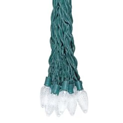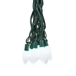 25 Pure White Ceramic LED C9 Pre-Lamped String Lights Green Wire