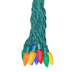 25 Multi-Colored Ceramic LED C9 Pre-Lamped String Lights Green Wire