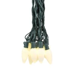 25 Warm White Ceramic LED C9 Pre-Lamped String Lights Green Wire