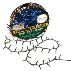 LED Connectable Twinkling Rice Light Set – 1000 Warm White Lights On Green Wire