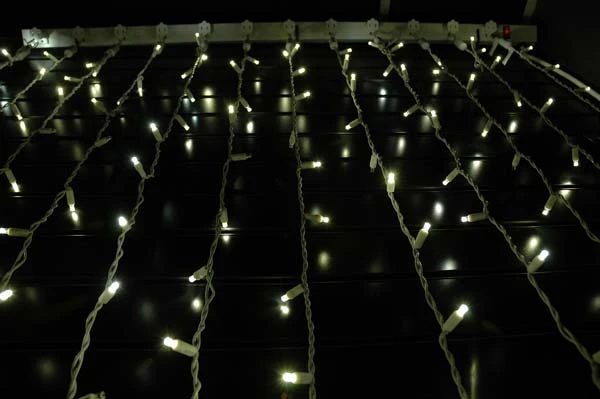 Twinkling LED Curtain Lights are perfect for the commercial and mall Christmas light displays. These commercial grade LED light strings are on white wire and have 100 LED’s on 6″ centers making each string 50′ long. Each string has 70% steady and 30% twinkle bulbs that randomly twinkle and also have no End to End connection making them perfect for curtain lights. Because these strings have non removable LED’s this eliminate failures from loose, broken or removed bulbs making these commercial grade LED Christmas lights very durable long lasting and extremely energy efficient. Each string also is full wave rectified which eliminates any flickering while making these LED Christmas lights brighter than ordinary LED mini Lights. Each LED uses a patented concave design making these LED viewable from all angles. . Energy Star qualified and UL Listed for indoor and outdoor use.