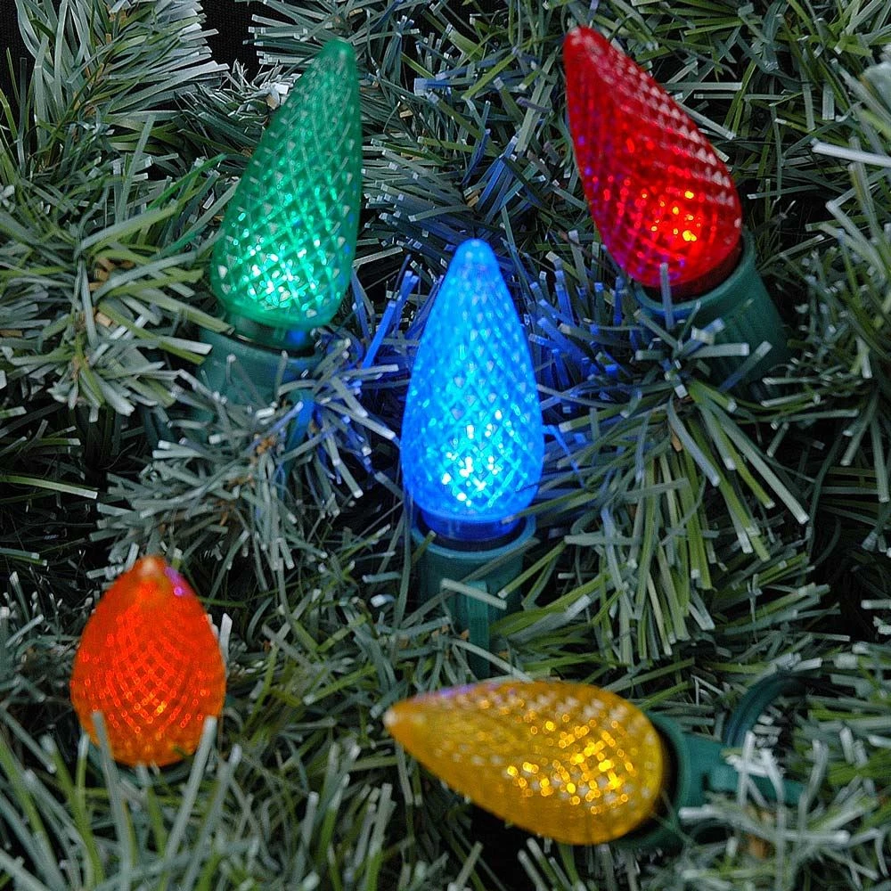 Multi-Colored Retrofit LED C9 replacement lamps will update your Christmas light display with the new, energy-efficient LED light technology. Our C9 Multi LED bulbs are the environmentally friendly, extremely cost effective way to light up your home or business for the Christmas season with the most brilliant and long-lasting lights around. While traditional incandescent C9 bulbs use 7 watts (0.059 amps) per bulb, our multi colored LED replacement bulbs use only 0.80 watts (0.0067 Amps). Built to last with a 3 season warranty. Our brilliant Multi Colored C9 retrofit bulbs utilize a Super Bright 2 SMD LED creating evenly distributed vivid bright light. We also use a thick plastic polycarbonate providing a durable LED C9 that will not chip, fade or crack. The bulbs use a special diamond cut prism on the outside of all our Retro-fit bulbs creating brilliant lighting effects. These SMD C9’s are also dimmable making them perfect for animated displays. Our LED C9 Diamond Faceted bulbs can be used with our C9 Stringers (10’, 12.5’, 25′ & 100′), our commercial grade bulk C9 bulk spools as well as our Vintage Twisted Wire Strings with E17 Bakelite Sockets.