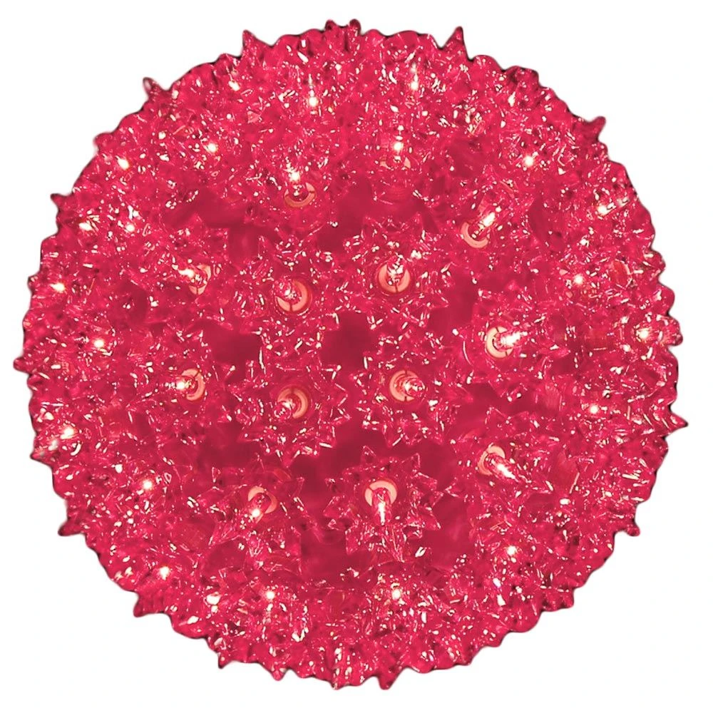 Our Pink 10″ Mega 150-Light Starlight Spheres is one of the coolest and most unique Christmas lighting products we carry. Our 150 Light mega Christmas light ball can be use for Christmas displays but also in many other out door and indoor applications. Each pink sphere ships with a extra long 12′ power cord cord and mounting string with clip to make the starlight sphere easy to install for any application. Many of our customers mix and match different sizes and colors to create a truly unique design. Includes 2 replacement lamps and fuse. UL listed for indoor/outdoor use.