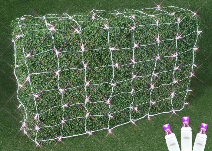 Our Pink LED white wire net lights feature a total of 100 super bright wide angle 5mm LED bulbs. Great for decorating hedges, bushes, shrubs, or wrapping tree trunks. These nets ensure an even distribution of the brilliant LED lights. So simple to use, these Pink LED Net Lights will reduce your installation time and save you money because they are energy efficient, burn cooler, and last longer than the incandescent alternative. Connect up to 21 sets together with the end-to-end plugs. UL Listed for safe use indoors and outdoors.