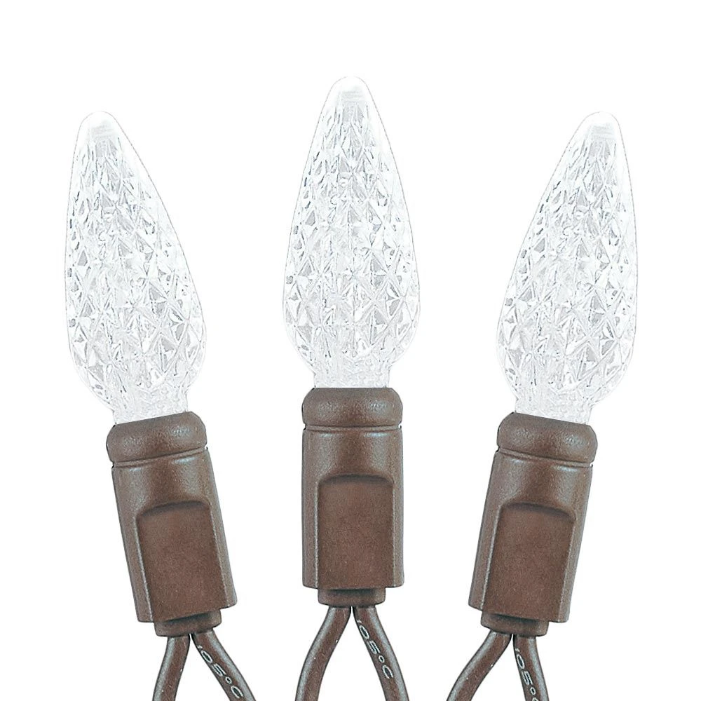 Our 70 light Commercial Grade Pure White C6 LED Strawberry Lights are sure to brighten up any holiday display or special event. These high quality LED Christmas light sets are built using nonremovable high quality super bright LED’s that will last several years. Because these sets use one-piece non-removable bulbs, failures due to broken, damaged, removed, or burnt-out bulbs, are eliminated. These Pure White LED mini light strings have 70 LED’s spaced every 4″ making them 24′ long. Our C6 LED mini Christmas lights have high quality, built-in, full wave rectifiers, making them extremely bright without any flicker. Connect up to 43 strings end-to-end. UL Listed for indoor and outdoor use and Energy Star qualified.