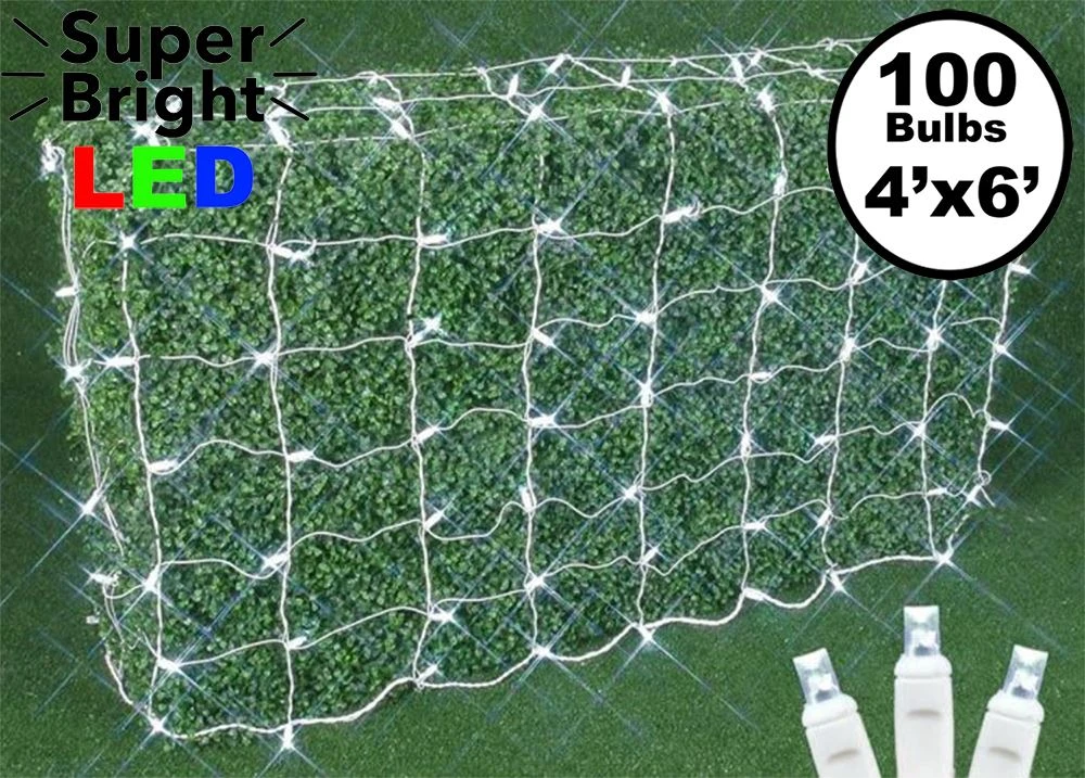 - Pure White 100 LED Net Lights 4′ x 6′ on White Wire