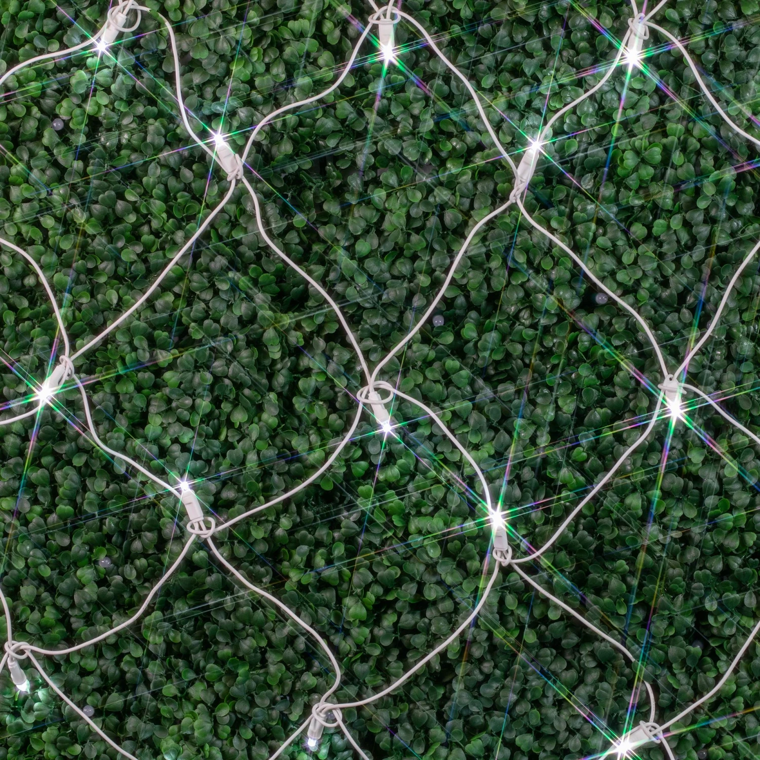 Our Pure White LED white wire net lights feature a total of 100 super bright wide angle 5mm LED bulbs. Great for decorating hedges, bushes, shrubs, or wrapping tree trunks. These nets ensure an even distribution of the brilliant LED lights. So simple to use, these Pure White LED Net Lights will reduce your installation time and save you money because they are energy efficient, burn cooler, and last longer than the incandescent alternative. Connect up to 21 sets together with the end-to-end plugs. UL Listed for safe use indoors and outdoors.