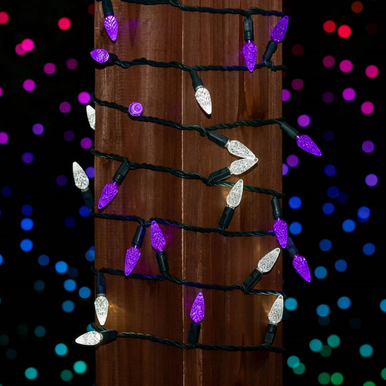 70 Bulb C6 Purple & Pure White LED Strawberry Mini Lights on Green Wire
