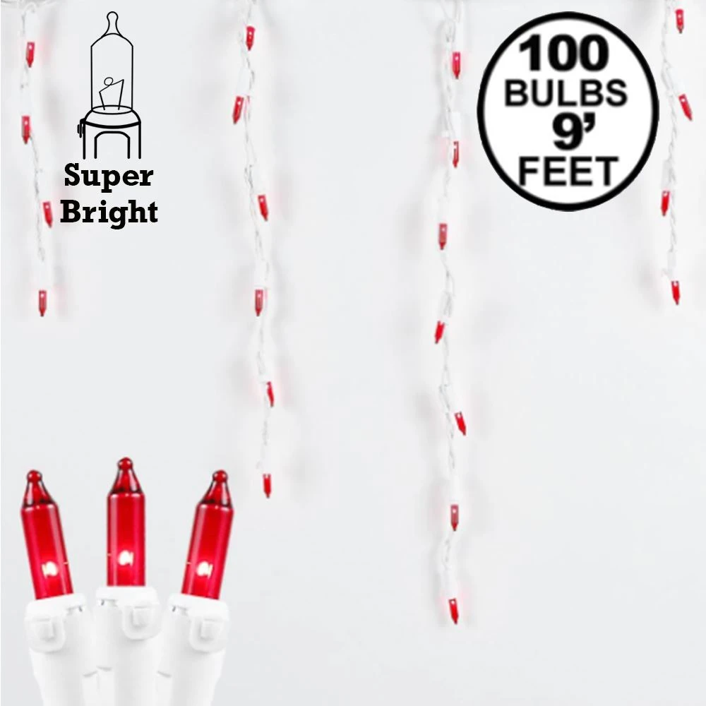 Commercial Grade Medium Drop Red White Wire Icicle Lights create perfect lines of winter bliss for any residence, commercial building or municipality. Each set of 9′ long red white wire has 18 medium drops ranging from 9″ to 15″ with a total of 100 commercial grade icicle lights. Connect up to 5 strings for a total running length of 45′. We include 3 replacement lamps with each string and encourage you to buy our commercial grade Icicle Light Clips for quick and easy installation. UL listed for indoor or outdoor use.