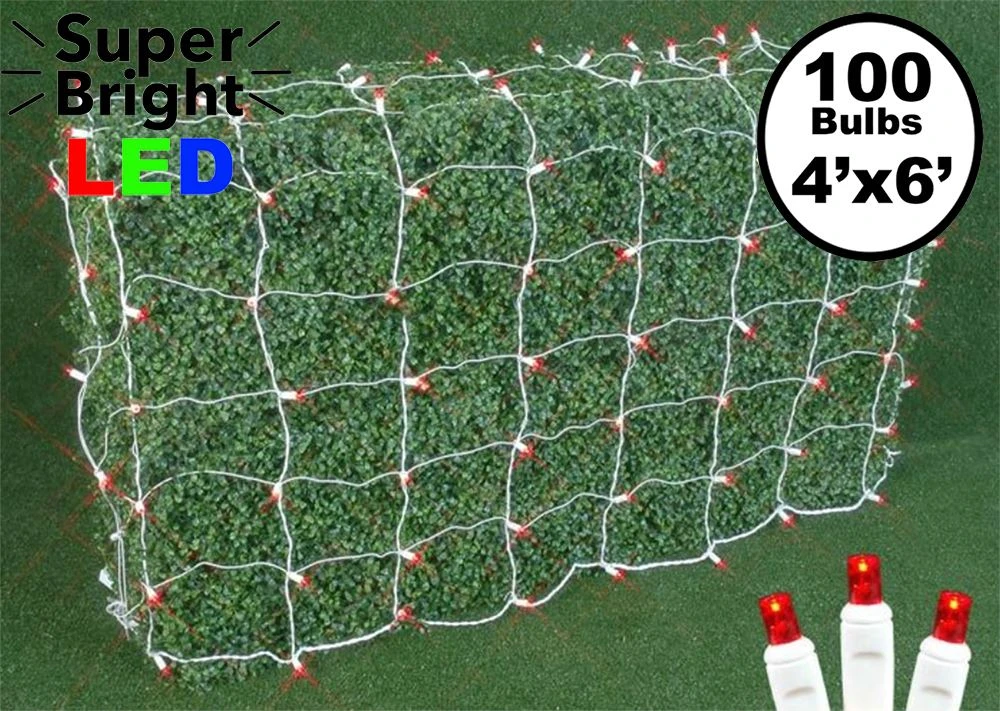 - Red 100 LED Net Lights 4′ x 6′ on White Wire