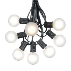 100 G40 Globe String Light Set With Frosted White Bulbs On Black Wire