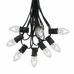 100 C7 String Light Set With Blue Ceramic Bulbs On Black Wire