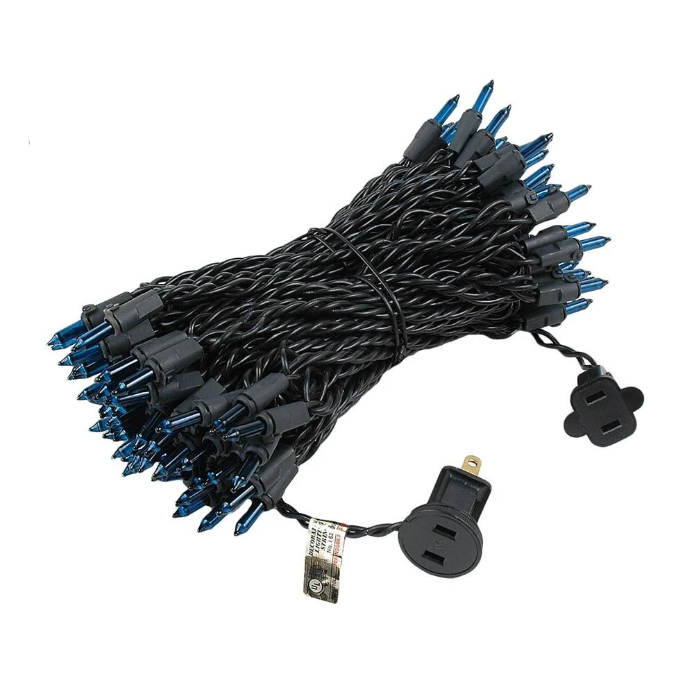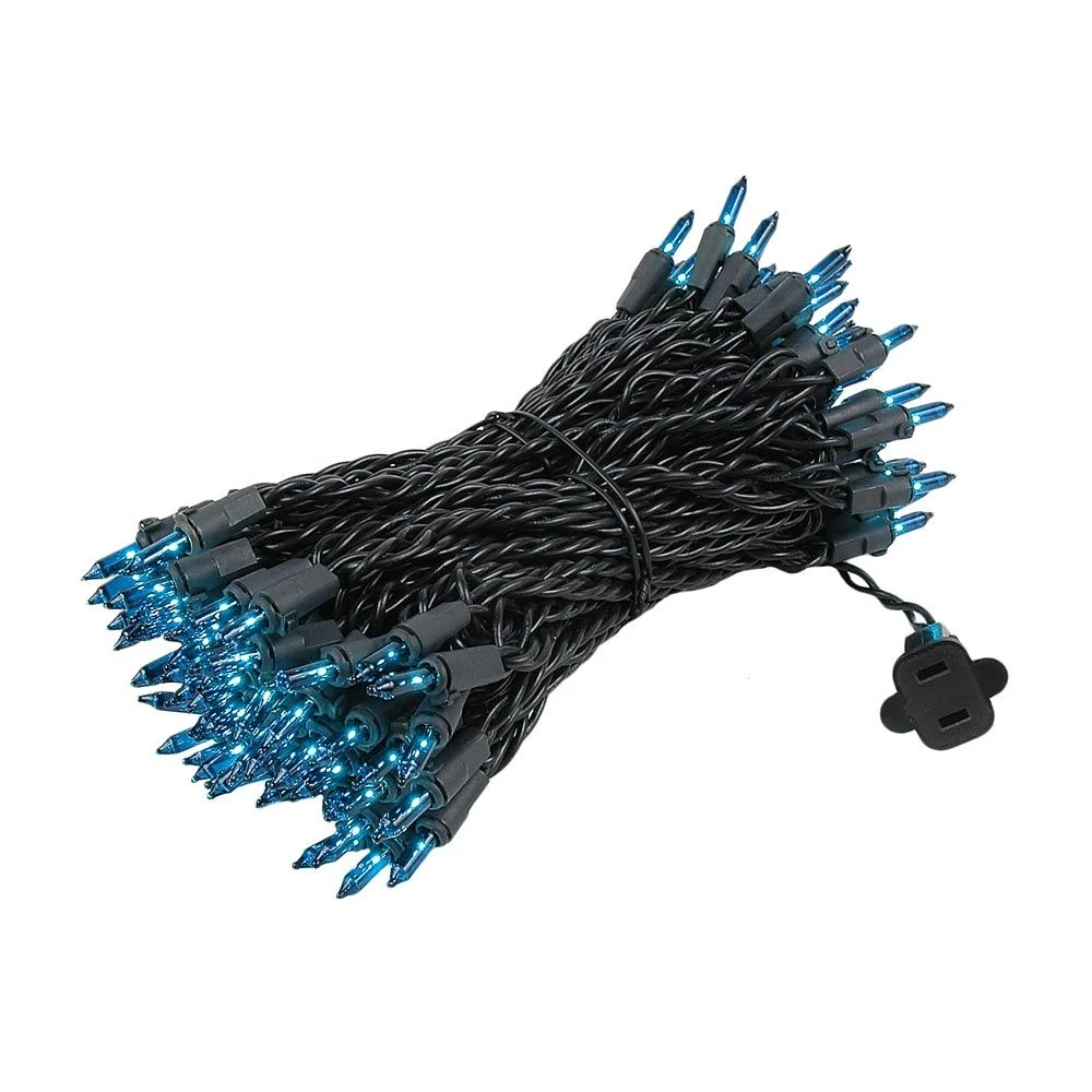 This Black wire Teal 100-light mini Christmas lights set is 50′ long with 6″ bulb spacing and ideal for decorating halloween, special holidays or craft projects. You can connect up to 5 strings end-to-end for a total of 250 linear feet, making these black wire clear mini lights a popular lighting option for commercial and residential displays. All of our mini light sets have snap-lock sockets that prevent twisting and pulling of the lamp to keep the bulbs securely in place, eliminating vandalism and light loss. You can expect a 3000-hour lamp life from these mini light sets and if one bulb goes out the rest will stay lit. Each set comes poly-bagged for easy clean up and includes 2 replacement lamps and fuses. UL Listed for indoor and outdoor usage.