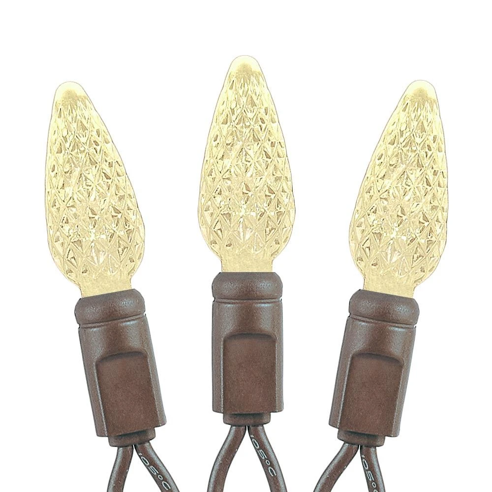 Our 70 light Commercial Grade Warm White C6 LED Strawberry Lights are sure to brighten up any holiday display or special event. These high quality LED Christmas light sets are built using nonremovable high quality super bright LED’s that will last several years. Because these sets use one-piece non-removable bulbs, failures due to broken, damaged, removed, or burnt-out bulbs, are eliminated. These Warm White LED mini light strings have 70 LED’s spaced every 4″ making them 24′ long. Our C6 LED mini Christmas lights have high quality, built-in, full wave rectifiers, making them extremely bright without any flicker. Connect up to 43 strings end-to-end. UL Listed for indoor and outdoor use and Energy Star qualified.