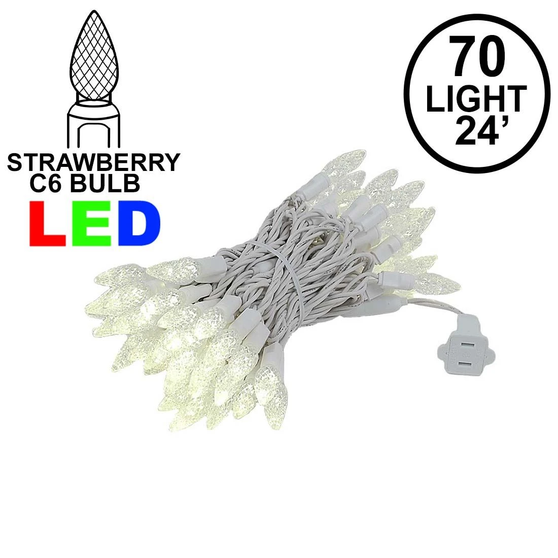 70 Bulb C6 Warm White LED Strawberry Mini Lights on White Wire